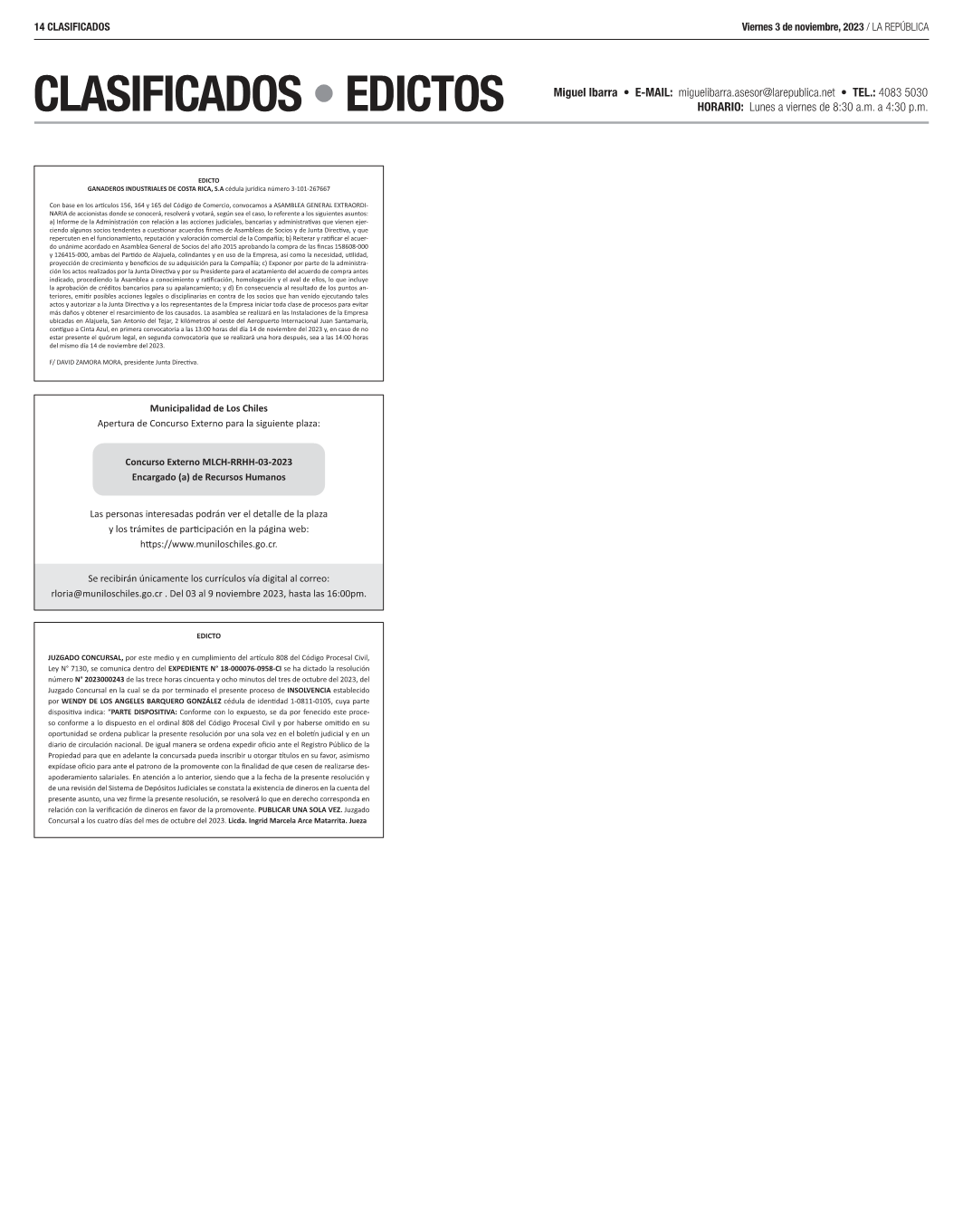 - CONCURSO MLCH-RRHH-03-2023 (En recepción de ofertas del 03 al 09 de noviembre del 2023, hasta las 4:00pm)